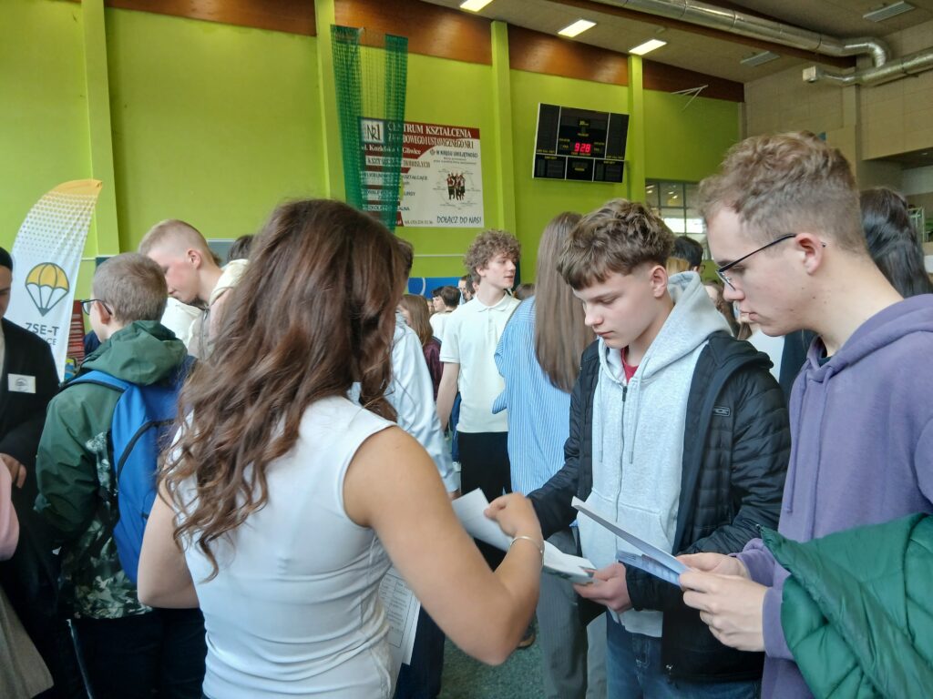 Podczas targów uczniowie i uczennice aktywnie angażowali się w reprezentowanie szkoły, dzieląc się z młodszymi kolegami swoimi doświadczeniami. Przedstawiali profile klas oraz opowiadali o codziennym życiu szkolnym. Ich obecność sprawiła, że przekaz był bardziej autentyczny i wiarygodny dla potencjalnych kandydatów.